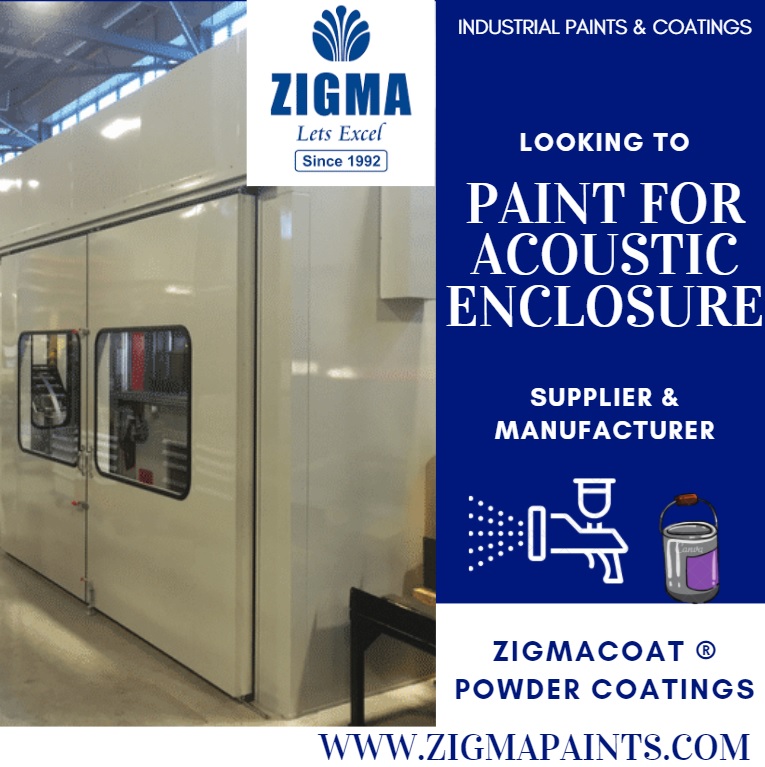 Zigma Paints Pvt. Ltd., almost highly recommends our powder coated Zigmacoat® paint finish on entire canopy. We feel that powder coating for acoustic enclosure is superior to paint and that it is the best choice in terms of price and quality. Because in this type of product Acoustic paints are norms for noise pollution. With this paint you can reduce conversation-level sounds coming through your acoustic enclosure.